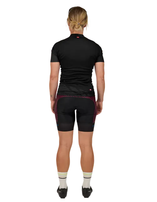 Sykkelbukse for dame med flat benavslutning, ergonomisk passform og støttende materiale.